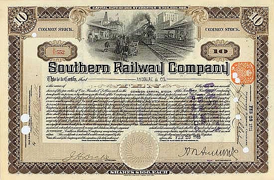 Concessa in licenza nel 1894 per sostituire il Richmond & Danville RR. Questo è avvenuto tramite il Richmond & West Point Terminal Ry. e Warehouse Co., che possedeva già una rete abbastanza estesa e nel 1894, insieme a quasi tutte le sue filiali, pose fine ad uno dei fallimenti più spettacolari. Il Southern Ry. successivamente accelerò acquistando altre ferrovie: meno di 30 anni dopo la sua fondazione, aveva il sistema ferroviario più potente degli Stati Uniti sudorientali con 7.000 miglia di binari.