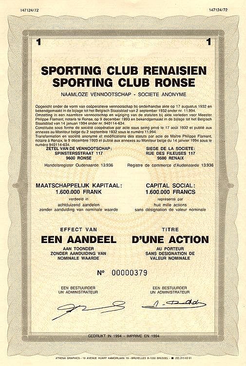 Mitico club calcistico belga, fondato nel 1908 nella città di Renaix allo scopo di sfruttare terreni per l’esercizio dello sport. Nel 1987 si fuse con la sua rivale storica l’AS Renaisienne per dare vita alla KSK Renaix.