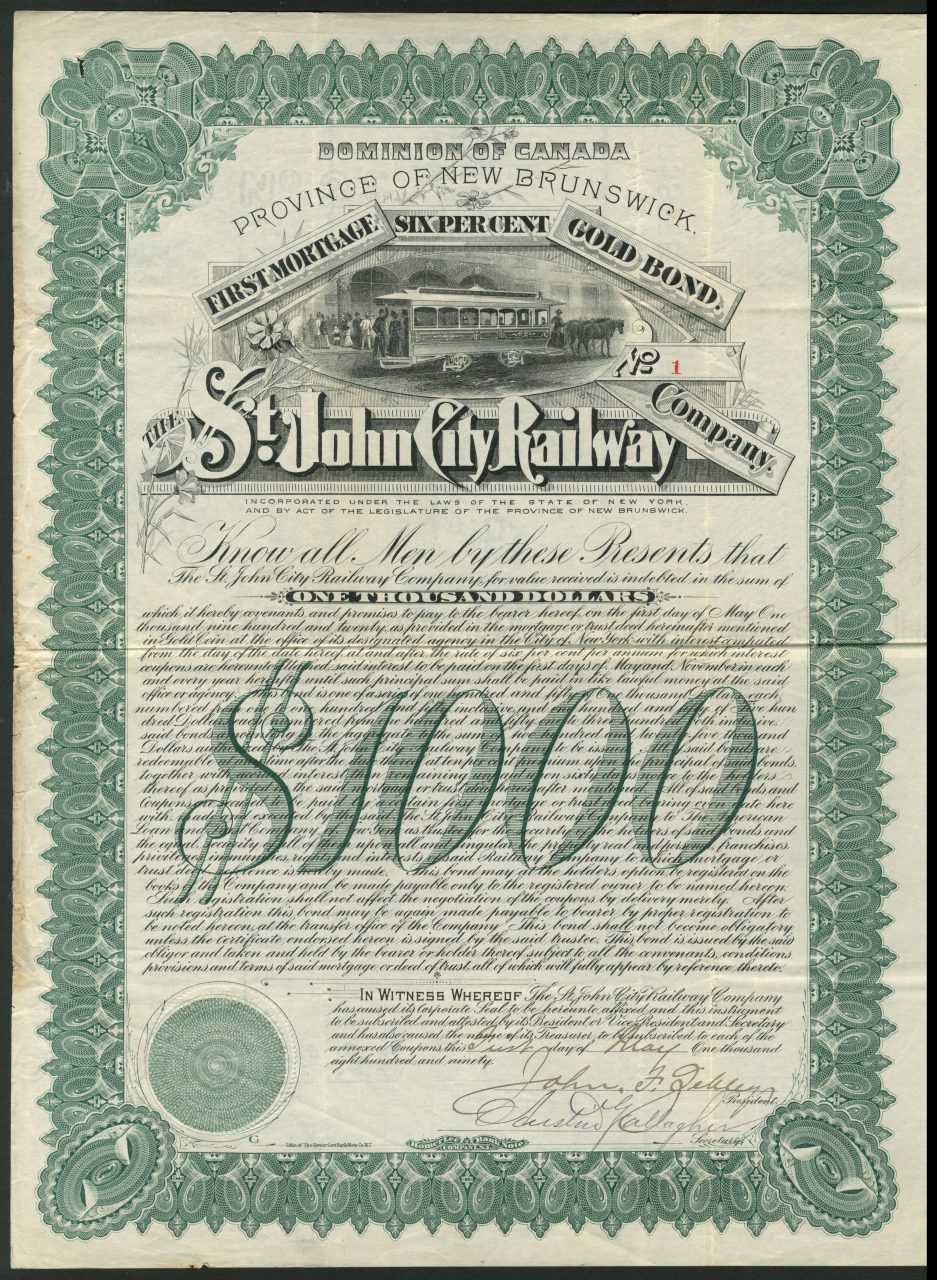 A-34509St.John City Railway Company-1Canada1890$1000R2 (1001-5000 pezzi)S3 (da 51 a 100 €)