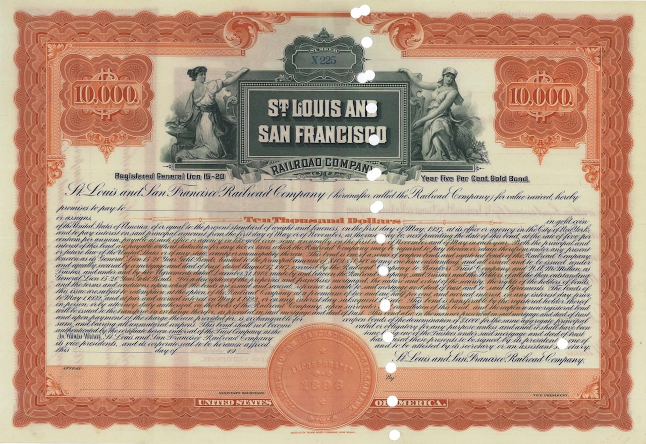 B-18272St. Louis-San Francisco Railway Company-2American Bank Note Company - New York-10000 dollariR4 (251-500 pezzi)S4 (da 101 a 250 €)