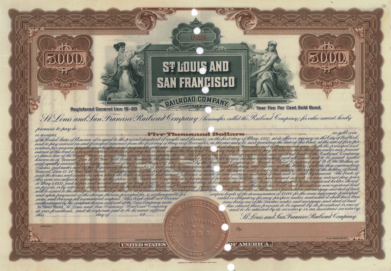 C-18272St. Louis-San Francisco Railway Company-3American Bank Note Company - New York-5000 dollariR4 (251-500 pezzi)S4 (da 101 a 250 €)
