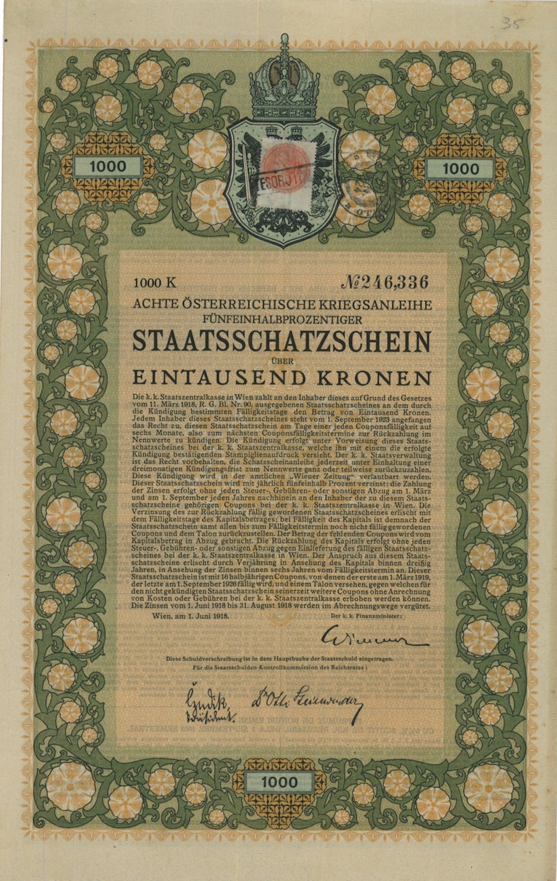 Staatsschatzschein Acthe Osterreichische Kriegsanleihe