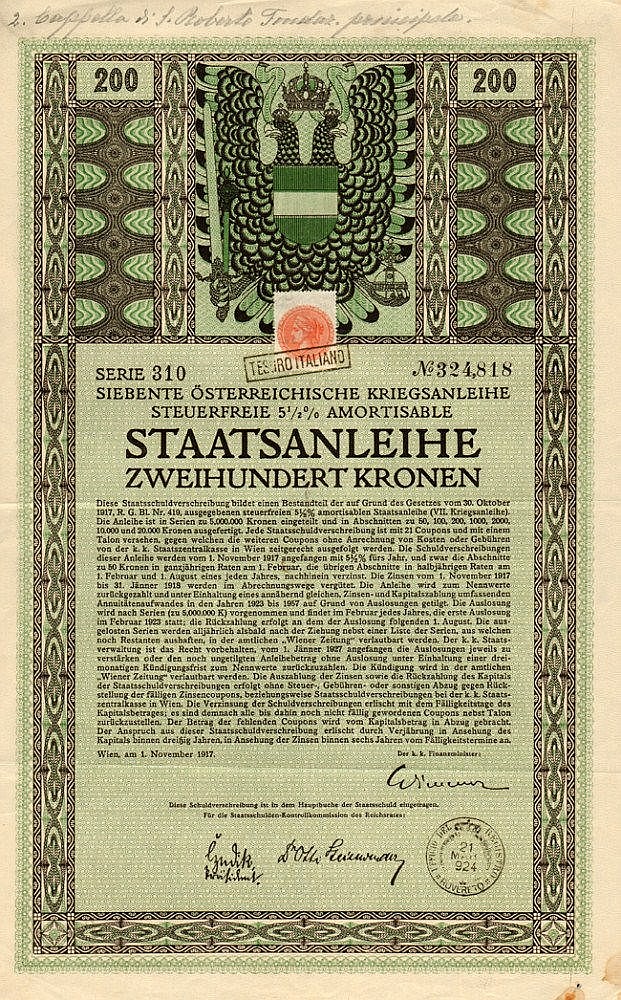 Staatsschatzschein Siebente Osterreichische Kriegsanleihe