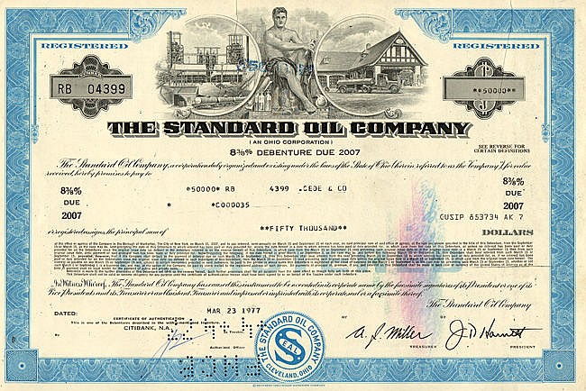 Nel 1899 la Standard Oil, i cui uffici erano al numero 26 di Broadway a New York, mutò la sua ragione sociale diventando una holding – una corporation chiamata Standard Oil Company of New Jersey (SONJ), che possedeva azioni in quarantuno società, che controllava altre compagnie che a loro volta controllavano altre società, formando una conglomerata che era percepita dall’opinione pubblica come estremamente pervasiva della società americana, controllata da un gruppo ristretto di manager e completamente libera da controlli esterni.