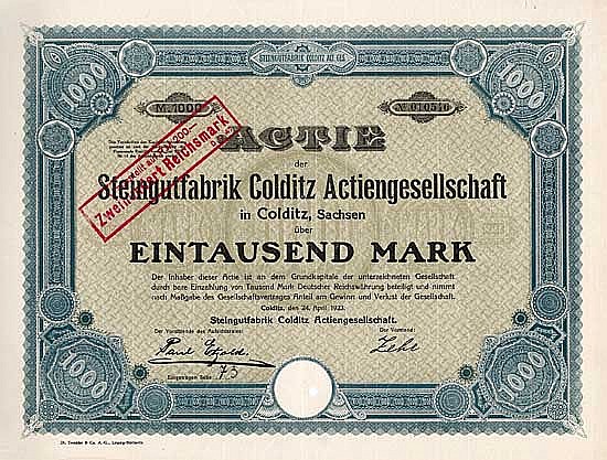 A-68259Steingutfabrik Colditz AG-1Colditz19231 azione da 1.000 Marchi--
