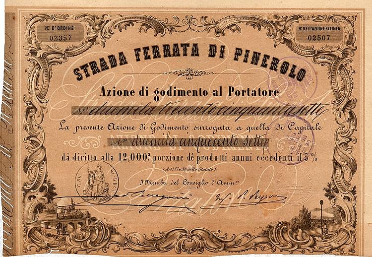 Lo scopo della società era la costruzione e l’esercizio della Ferrovia Torino – Pinerolo, successivamente prolungata fino a Torre Pellice con conseguente mutamento della ragione sociale in S.A. della Ferrovia Torino-Pinerolo-Torre Pellice. La compagnia, posta in liquidazione nel 1924, venne assorbita dalla Società Ferroviaria dell’Alta Italia.
