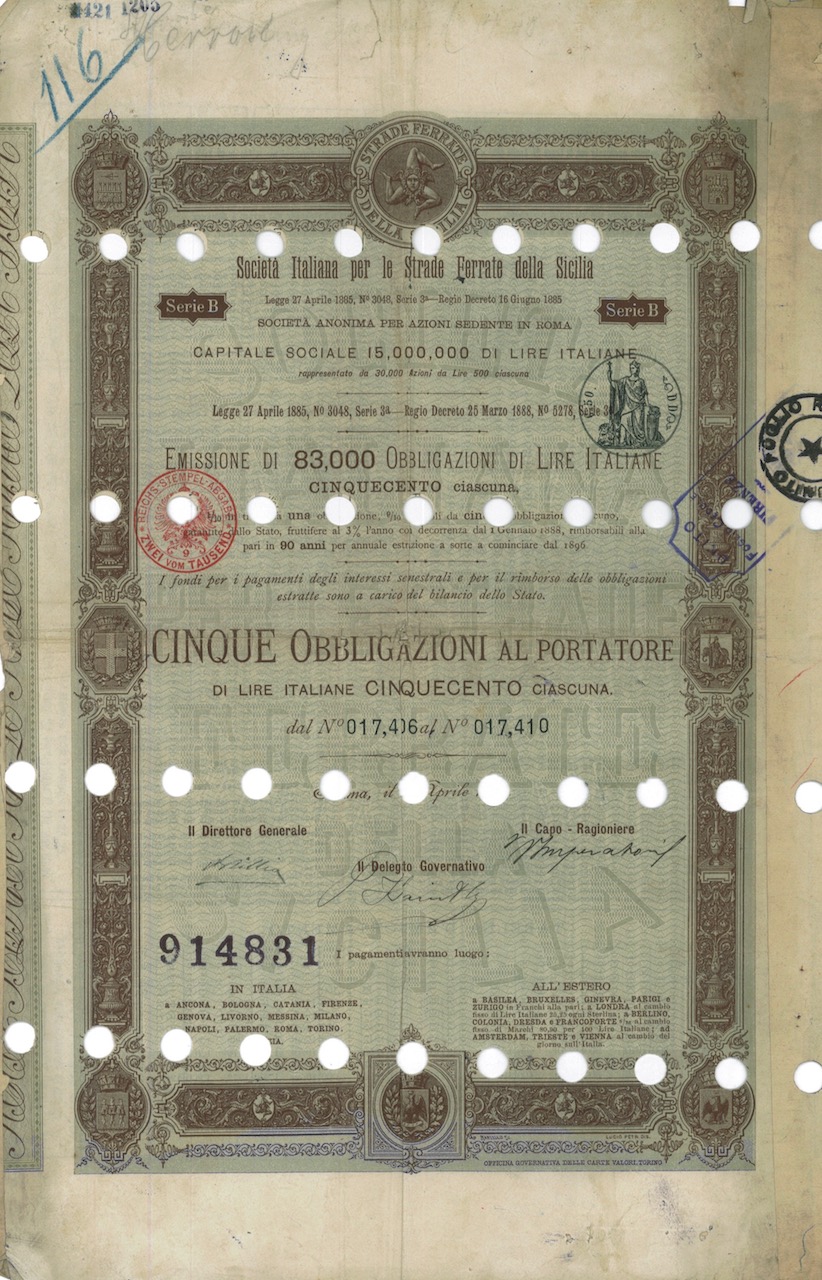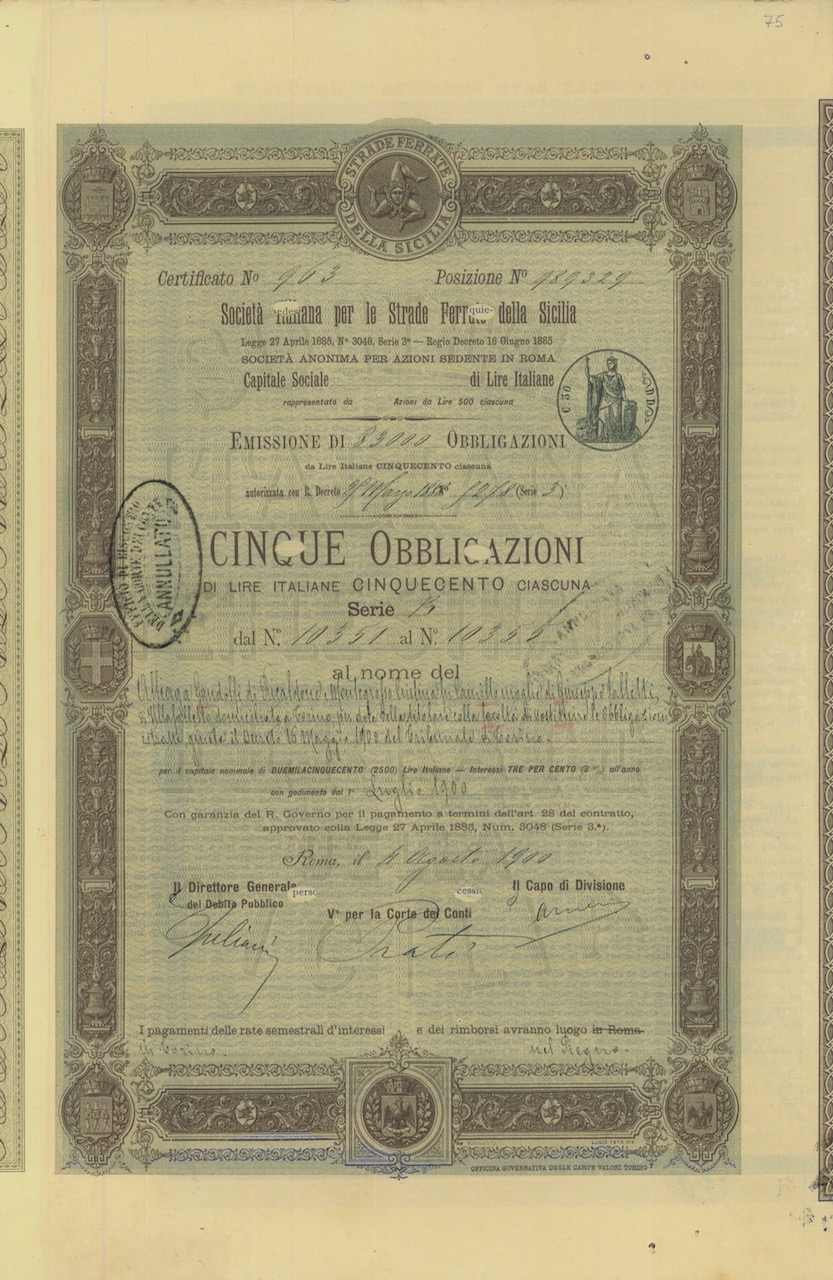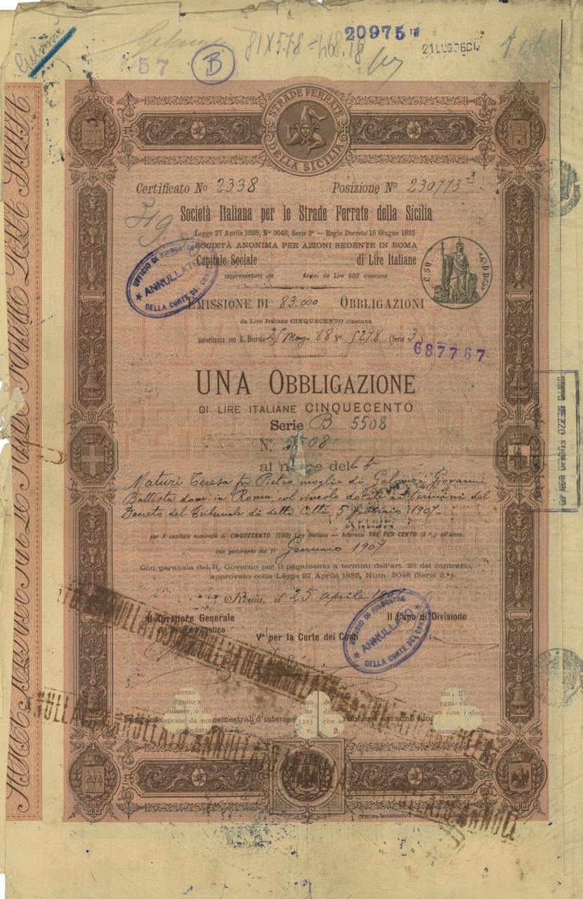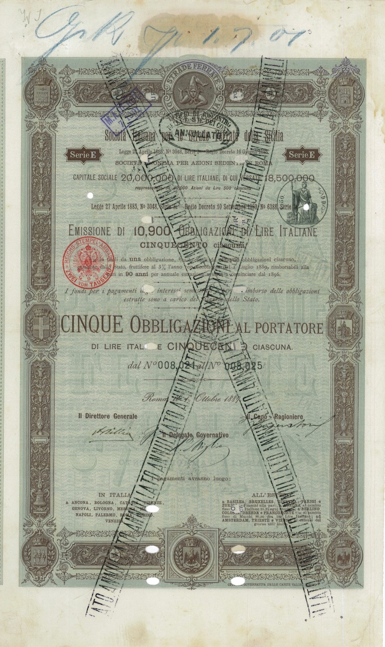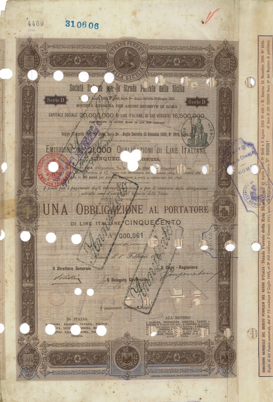 Strade Ferrate della Sicilia Soc. It. per le (Reg. Decr. 16/06/1885)