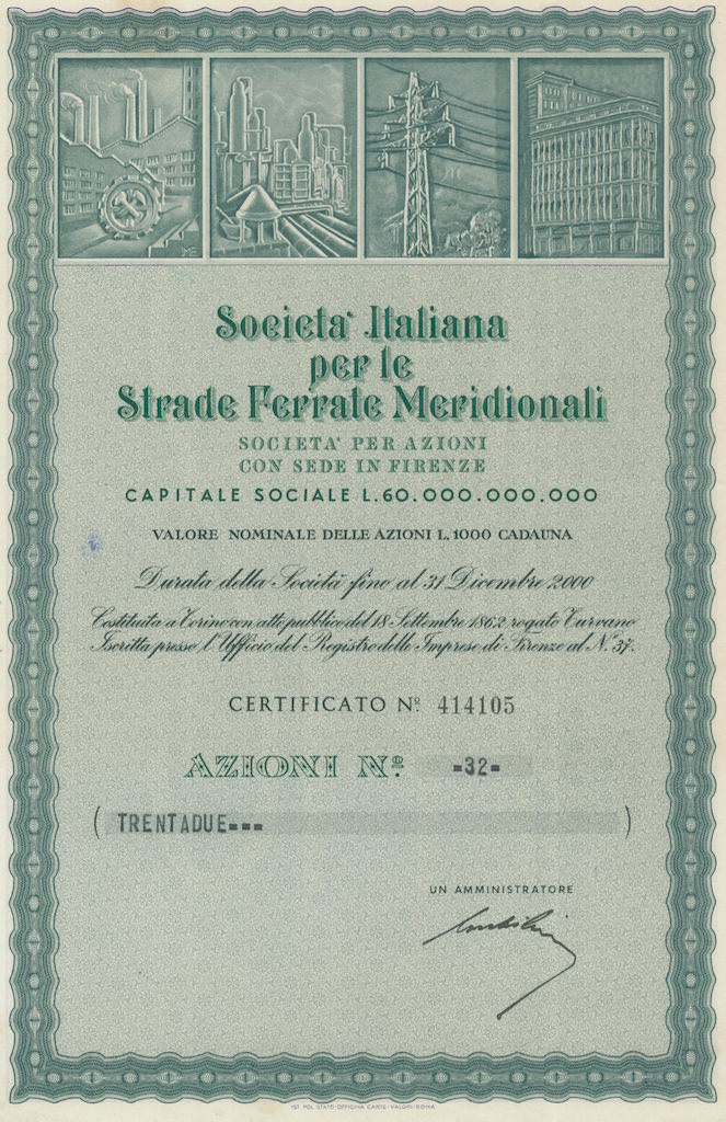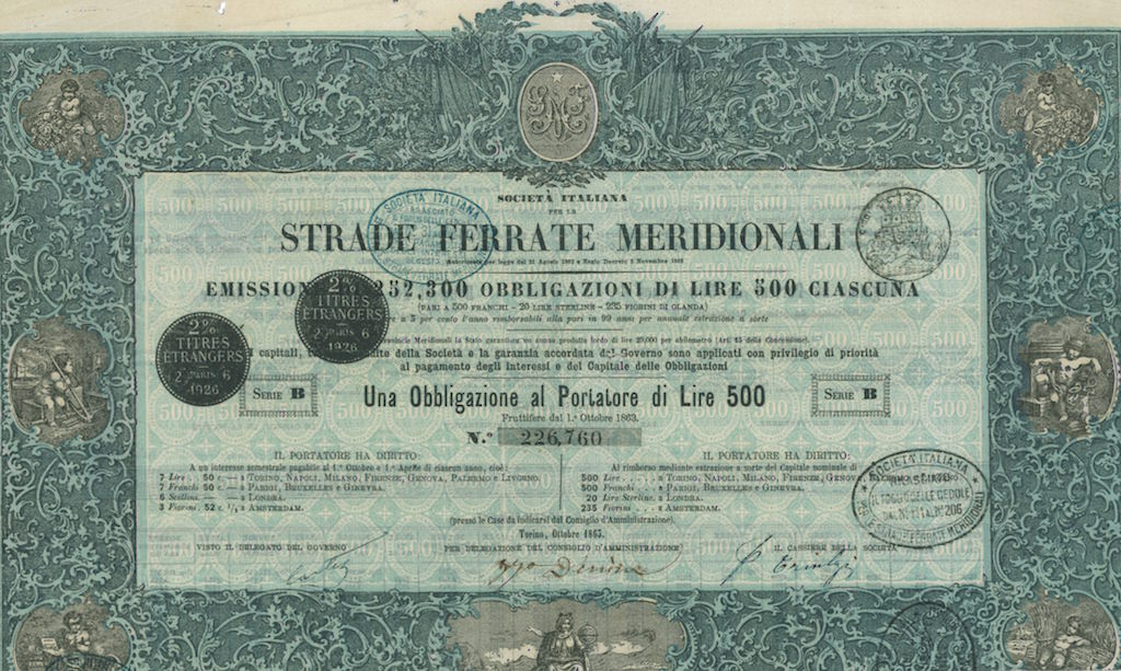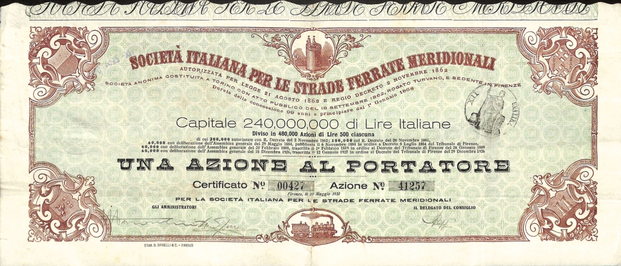 Fu a questo punto che il conte Bastogi, banchiere livornese, con l’appoggio determinante della Cassa di Commercio e Industria di Torino, guidata da Domenico Balduino, e il concorso di numerosi banchieri di Genova, Torino, Milano, Livorno e Firenze, tra cui il barone Ignazio Weil Weiss (Torino), le case bancarie milanesi Giulio Belinzaghi, Zaccaria-Pisa e altre, raccolse un capitale di 100 milioni di lire e nel 1862 assunse la concessione di quelle ferrovie meridionali, stabilita poi con la legge del 21 agosto dello stesso anno. La nuova concessionaria si costituì a Torino il 18 settembre 1862 assumendo la ragione sociale di Società italiana per le strade ferrate meridionali ebbe come presidente il conte Pietro Bastogi, e vice presidenti, il barone Bettino Ricasoli ed il conte Giovanni Baracco. Lo scopo primario era quello di mettere in atto la costruzione e l’esercizio di linee ferroviarie nell’Italia centrale e meridionale secondo quanto previsto nella concessione. La Società per le strade ferrate meridionali fu la prima grande azienda ferroviaria d’Italia; la sede direzionale venne stabilita a Firenze. Il patrimonio sociale era stato formato da italiani e con capitali italiani; anche in seguito tra i soci vi furono i principali banchieri privati italiani. Domenico Balduino (Cassa di Commercio e Industria poi Credito Mobiliare), le case bancarie I. Weil Weiss, Zaccaria-Pisa e Giulio Belinzaghi sulla piazza di Milano, curarono la diffusione verso il pubblico dei titoli azionari e obbligazionari, che vennero anche quotati in Borsa e loro esponenti furono presenti a lungo accanto a Pietro Bastogi nel consiglio di amministrazione della Società. Luigi Pisa prima (m. 1895), poi Giuseppe Pisa (m. 1904), poi Giuseppe Sullam (m.1927), rappresentarono a lungo la casa bancaria Z. Pisa nel consiglio di amministrazione della Società.