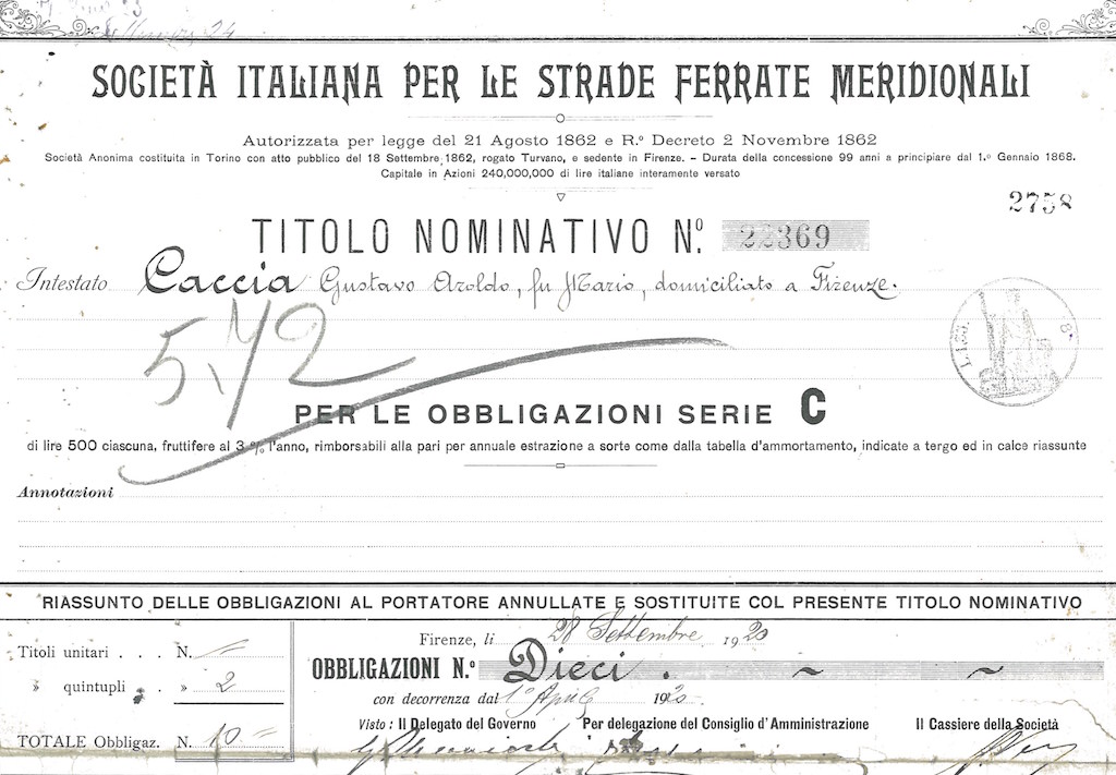 Nello stesso 1862, nel mese di giugno, venne firmata la convenzione per la ferrovia Adriatica da Ancona ad Otranto. Nel corso del 1863 acquisì dalla Società Bayard la Napoli-Salerno e la diramazione per Castellammare.