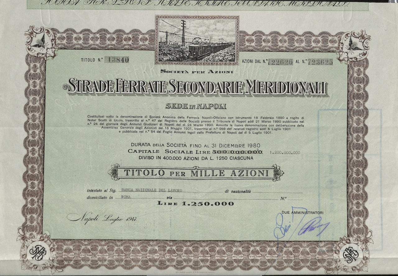 Con delibera dell’assemblea straordinaria del 16 maggio 1901 la società si trasformò in società per azioni assumendo la nuova denominazione di Strade Ferrate Secondarie Meridionali. La trasformazione fu spinta da Teodoro Cutolo, imprenditore napoletano molto attivo in vari settori dell’economia locale, che riuscì ad ottenere l’appoggio della Società Meridionale di Elettricità (SME), permettendo un incrocio di interessi tra industrie elettriche e dei trasporti. Poco prima del cambio di denominazione la società e la SME avevano ottenuto la concessione per una linea a scartamento ridotto attorno al Vesuvio diramantesi dalla preesistente Napoli-San Giuseppe Vesuviano.