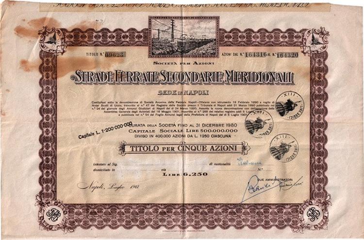 Con delibera dell’assemblea straordinaria del 16 maggio 1901 la società si trasformò in società per azioni assumendo la nuova denominazione di Strade Ferrate Secondarie Meridionali. La trasformazione fu spinta da Teodoro Cutolo, imprenditore napoletano molto attivo in vari settori dell’economia locale, che riuscì ad ottenere l’appoggio della Società Meridionale di Elettricità (SME), permettendo un incrocio di interessi tra industrie elettriche e dei trasporti. Poco prima del cambio di denominazione la società e la SME avevano ottenuto la concessione per una linea a scartamento ridotto attorno al Vesuvio diramantesi dalla preesistente Napoli-San Giuseppe Vesuviano.