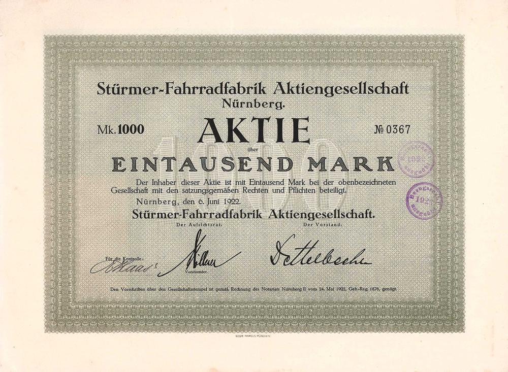 Fondata a Norimberga nel 1922 per rilevare l’attività del “Nürnberger Fahrradindustrie Vogel & Dettelbacher”, in particolare la produzione e la vendita di biciclette e autoveicoli. Trasferimento a metà del 1924 a Fürth i.B. e conclusione di una comunità di interessi con la “Ruco” Metallwerke AG (un produttore di macchine per birrerie) con sede lì. Nell’autunno del 1925, entrambe le compagnie fallirono.