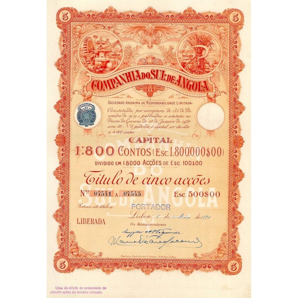 A-59315Sul de angola comp. Do-1 Lisbona19205 SharesR2 (1001-5000 pezzi)S2 (da 26 a 50 €)