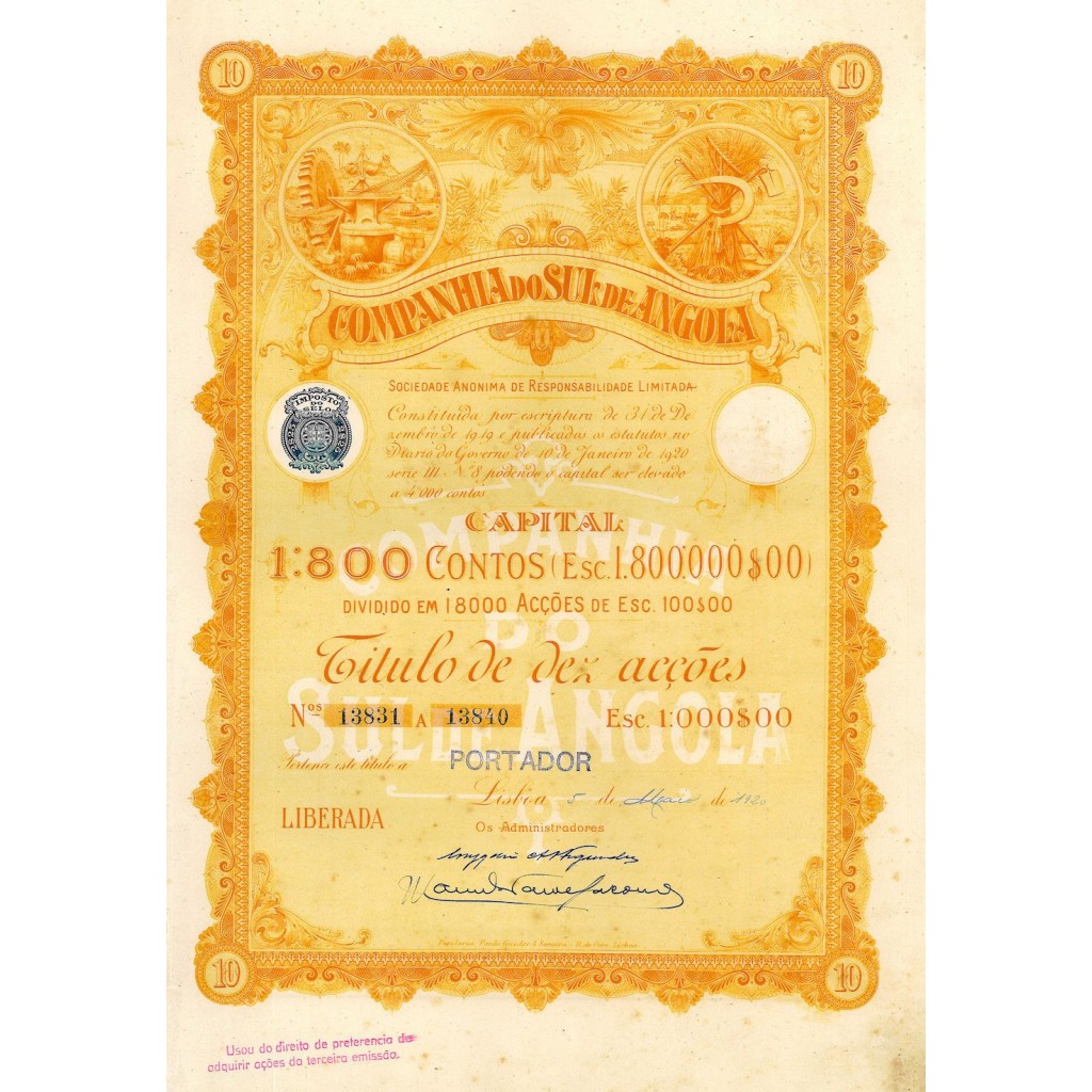 B-59315Sul de angola comp. Do-2 Lisbona192010 SharesR2 (1001-5000 pezzi)S2 (da 26 a 50 €)