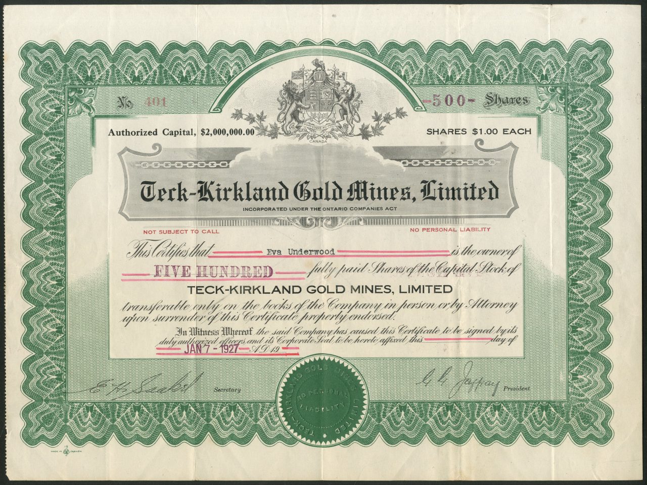 Incorporato in Ontario nel 1927. Miniere nel lago Kirkland.