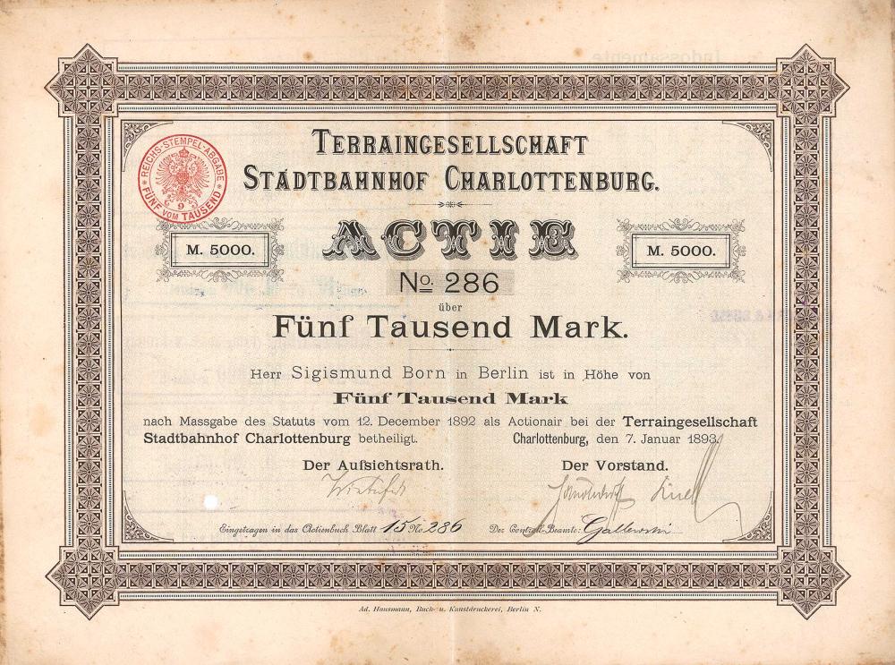 A-64554Terraingesellschaft Stadtbahnhof Charlottenburg-1Charlottenburg18931 azione da 5.000 MarchiR6 (51-100 pezzi)S6 (da 501 a 1.000 €)