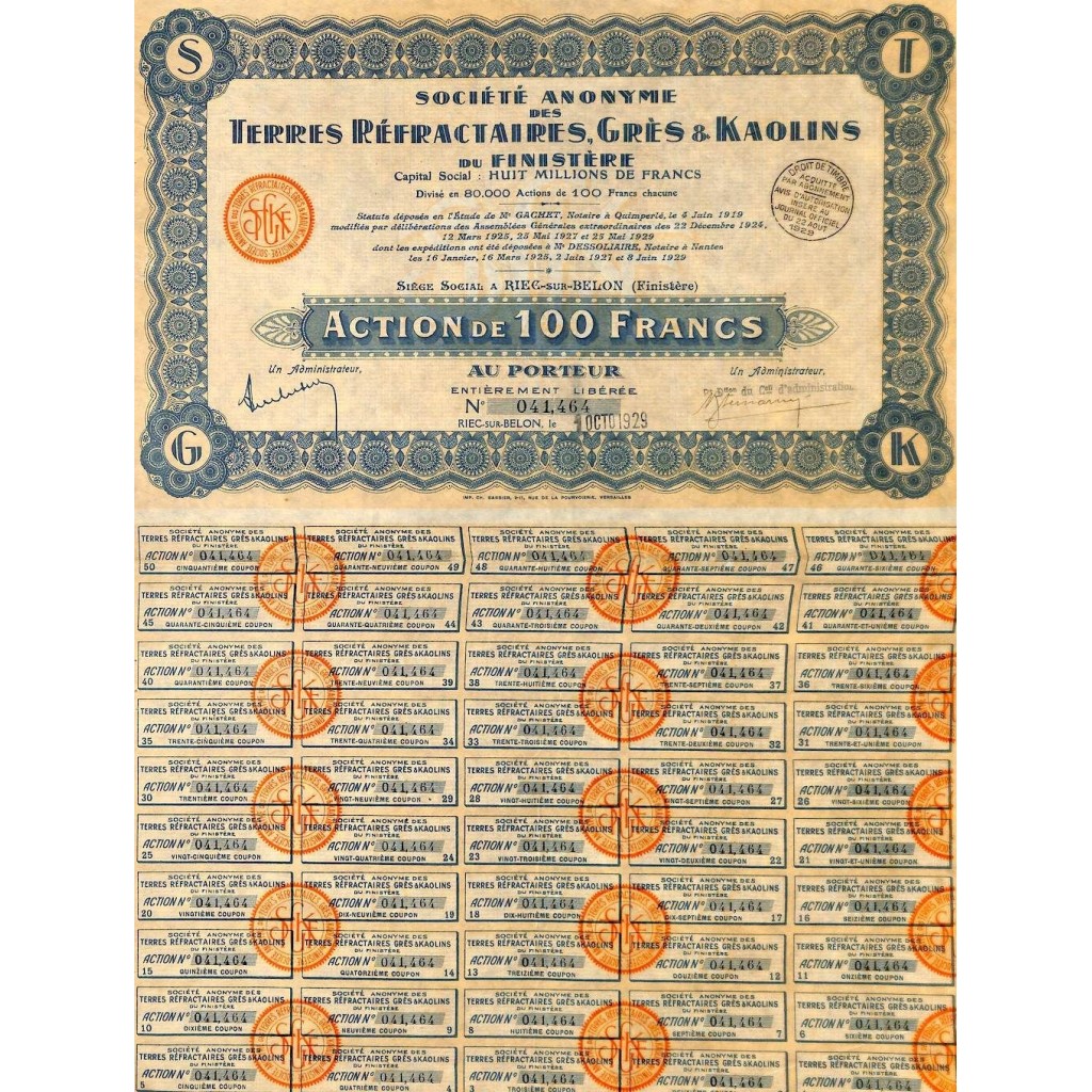 A-51678Terres refractaires, gres et kaolins du finistere-1 Riec-sur-Belon1929100 FranchiR1 (Più di 5000 pezzi)S1 (da 0 a 25 €)