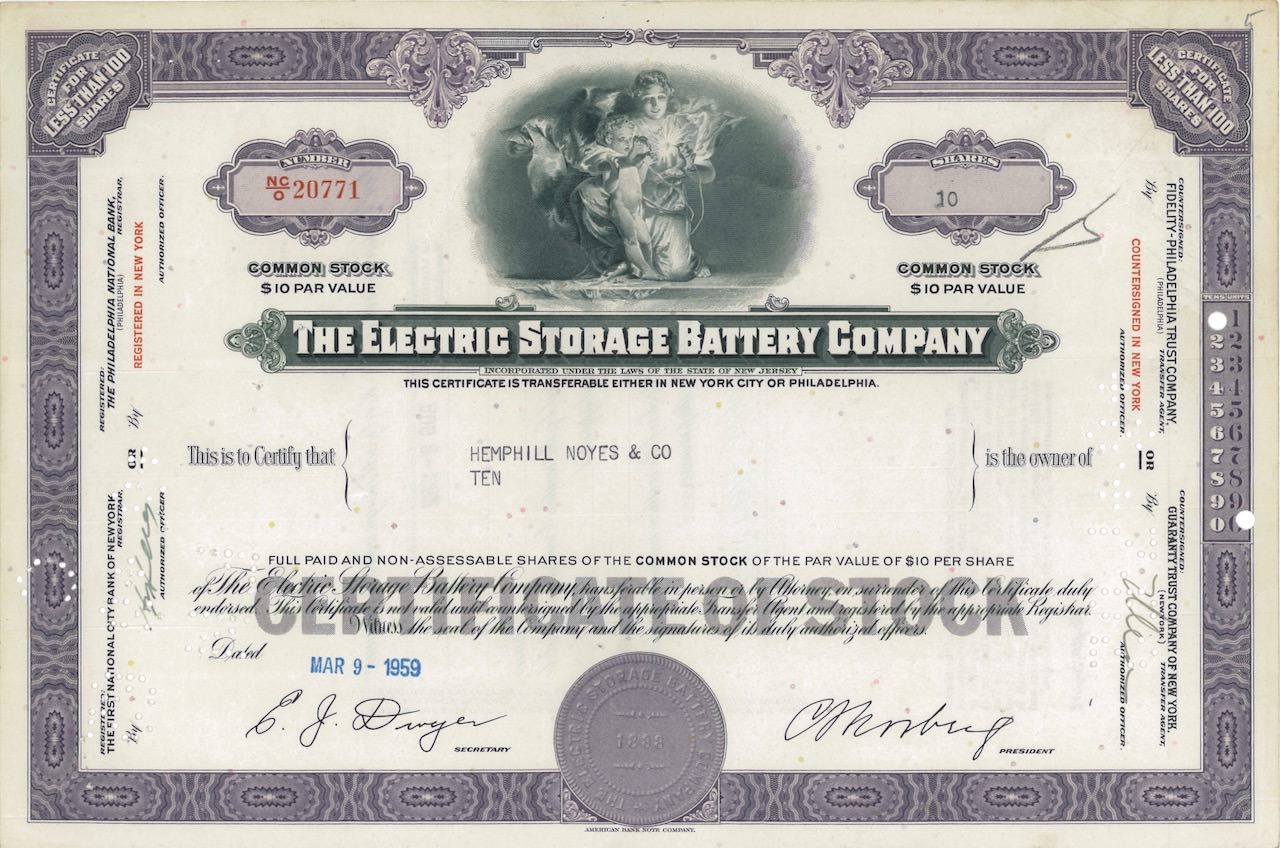 A-26894The Electric Storage Battery Company-1American Bank Note Company - New York1959Variabile (meno di 100 azioni)R1 (Più di 5000 pezzi)S1 (da 0 a 25 €)
