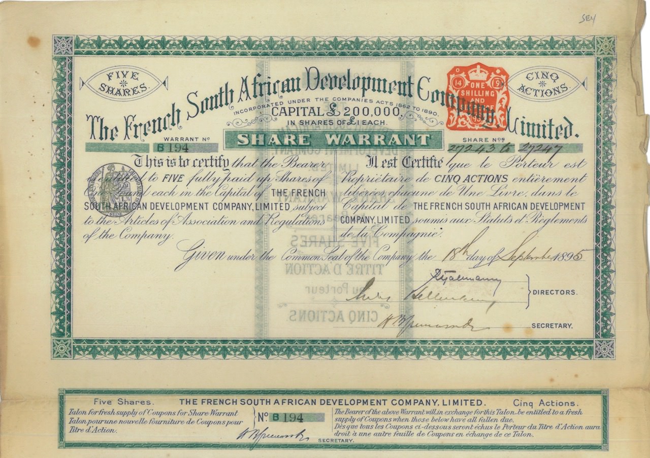 A-27557The French South African Development Comp. Limited-1N.D.18955 azioniR2 (1001-5000 pezzi)S1 (da 0 a 25 €)