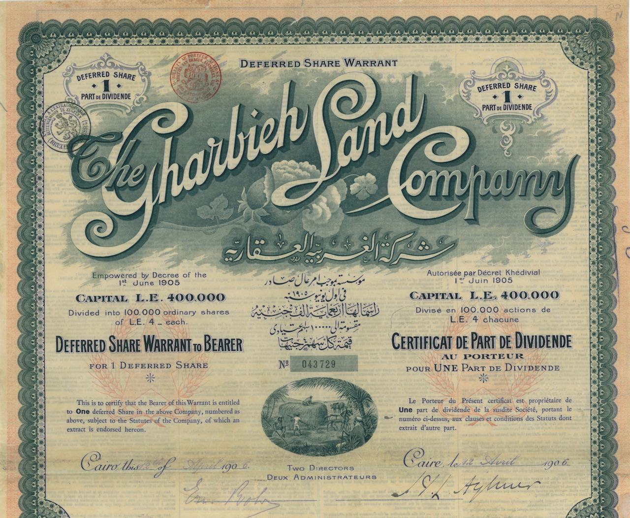A-27502The Gharbieh Land Company-1-Il Cairo19061 azioneR2 (1001-5000 pezzi)S2 (da 26 a 50 €)