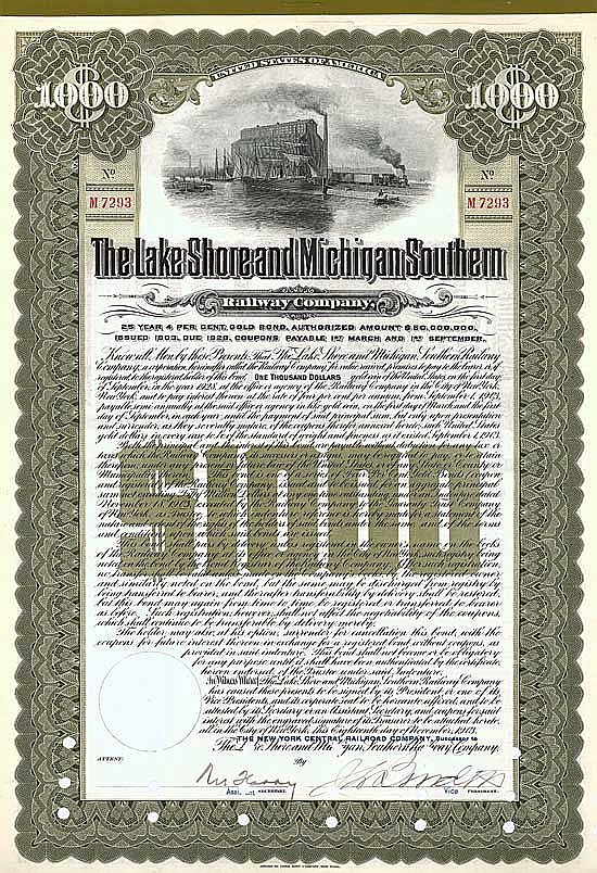 Fondata nel 1869 fondendo le seguenti quattro ferrovie: Michigan Southern & Northern Indiana RR; Cleveland & Toledo RR; Cleveland, Painesville e Ashtabula RR; Buffalo & Erie RR. I loro primi precursori furono Erie & Kalamazoo RR (fondata nel 1833), Buffalo & Mississippi RR (fondata nel 1835), Erie & North East RR (fondata nel 1842) e Franklin Canal Co. (fondata nel 1844) Junction RR (fondata nel 1846), Cleveland, Painesville e Ashtabula RR (fondata nel 1848) e Toledo, Norwalk & Cleveland RR (fondata nel 1850). L’ultima rete di collegamenti comprendeva 1.511 miglia con la rotta principale di 535 miglia Buffalo-Toledo-Chicago, che prima correva lungo la sponda meridionale del lago Erie e poi attraversava il sud del Michigan. Intorno al 1877, con il suo centro di New York, Cornelius Vanderbilt acquisì una partecipazione di maggioranza, il treno era l’espansione perfetta verso ovest per Chicago. Nel 1914 la L.S. & M.S.Ry. fecero la fusione completa a New York. Dopo lo scioglimento di Conrail nel 1998, la proprietà della trafficata ferrovia di Cleveland fu divisa: la sezione orientale andò a CSX, la sezione occidentale a Norfolk Southern di Warren Buffett, e i treni passeggeri Amtrak continuano ancora oggi.