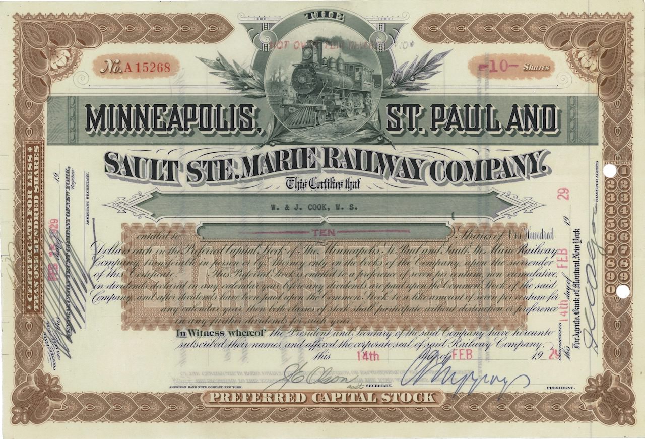 A-26347The Minneapolis, St. Paul and Sault Ste. Marie Railway Co.-1American Bank Note Company - New York1929VariabileR5 (101-250 pezzi)S4 (da 101 a 250 €)