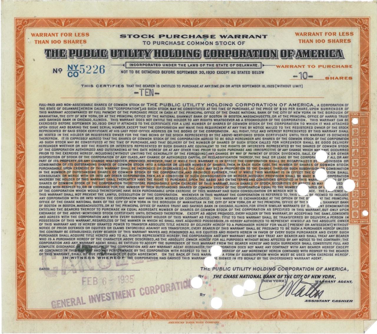 A-26956The Public Utility Holding Corporation of America-1American Bank Note Company - New YorkNew York1935VariabileR1 (Più di 5000 pezzi)S1 (da 0 a 25 €)