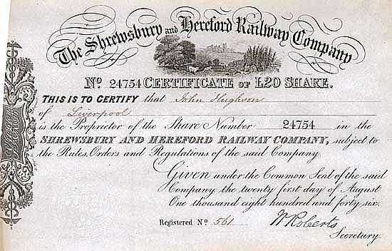 A-68803The Shrewsbury & Hereford Railway Company-118461 azione da 20 £--