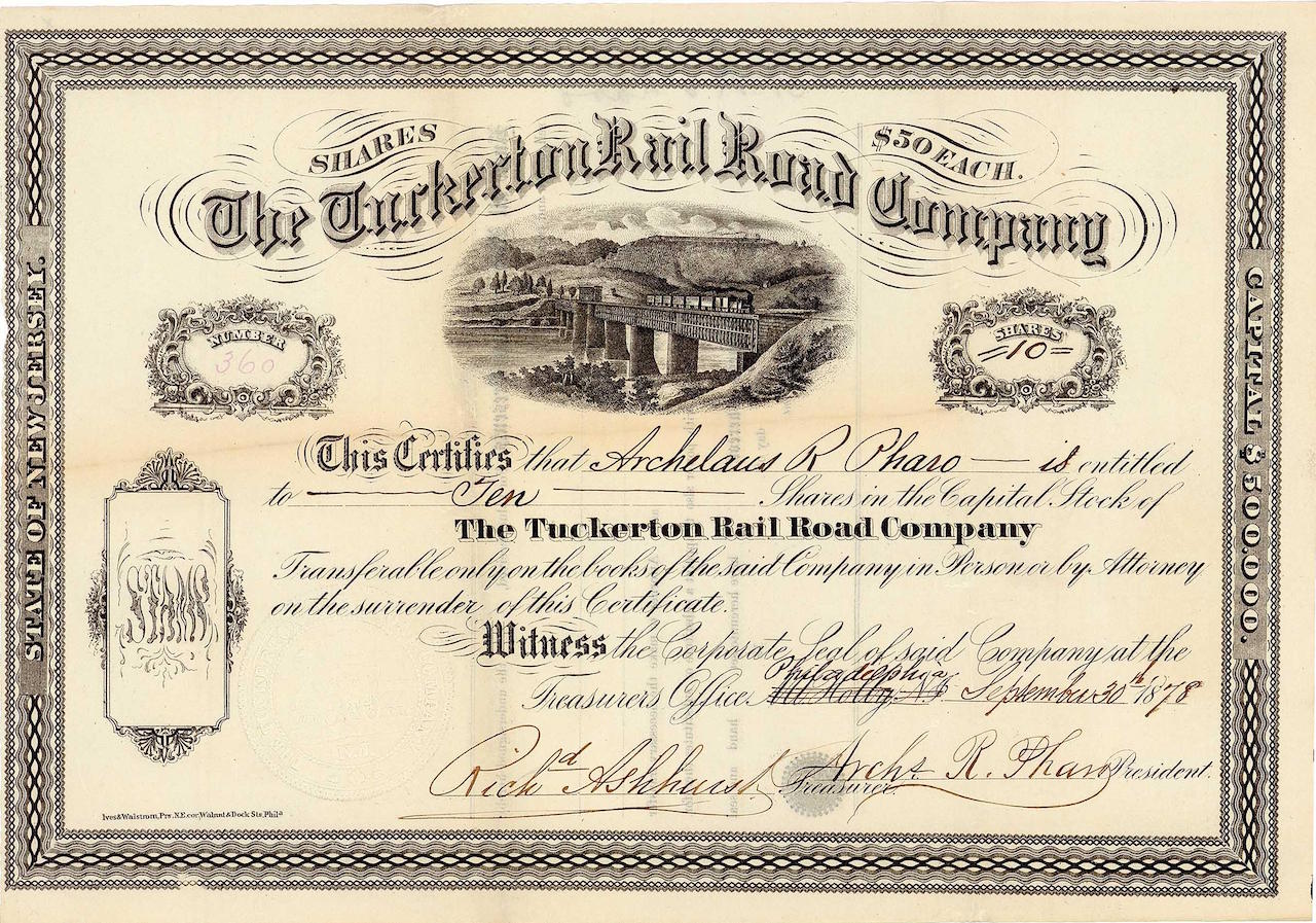 Fondata nel 1866. La rotta di 29 miglia Whitings-Tuckerton, N.J. entrò in funzione nel 1871. Insolvente nel 1880 e riorganizzata con lo stesso nome. Dal 1909 ebbe anche la gestione sulla rotta Manahawken-Beach Haven di 12 miglia della Philadelphia & Beach Haven RR. Sebbene il piccolo treno avesse solo 7 carri, che furono mossi da 3 locomotive, mantenne la sua indipendenza per decenni (gli azionisti erano uomini d’affari e agricoltori locali) e fu smantellato solo nel 1936. Resurrezione nel 2007 sotto forma di una replica in scala 1: 8 fedele all’originale in un parco di 64 acri a New Gretna, N.J.