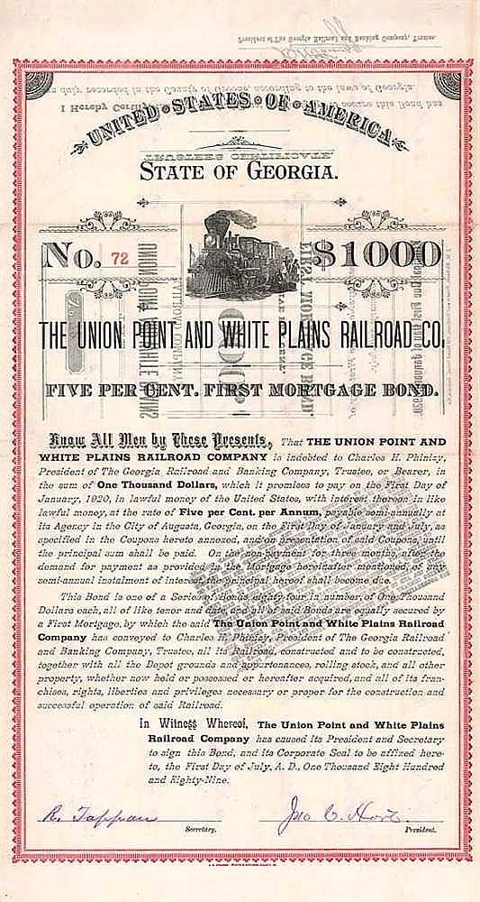 La compagnia, con licenza nel 1886, costruì la ferrovia lunga 12 miglia da Union Point a White Plains nello stato della Georgia, e le operazioni furono aperte nel 1889. Georgia RR & Banking Co., che possedeva anche la maggioranza delle azioni e forniva il materiale rotabile, era responsabile delle operazioni. Successivamente divenne parte del “Atlantic Coast Line System”, a cui furono trasferiti i sistemi ferroviari nel 1929.