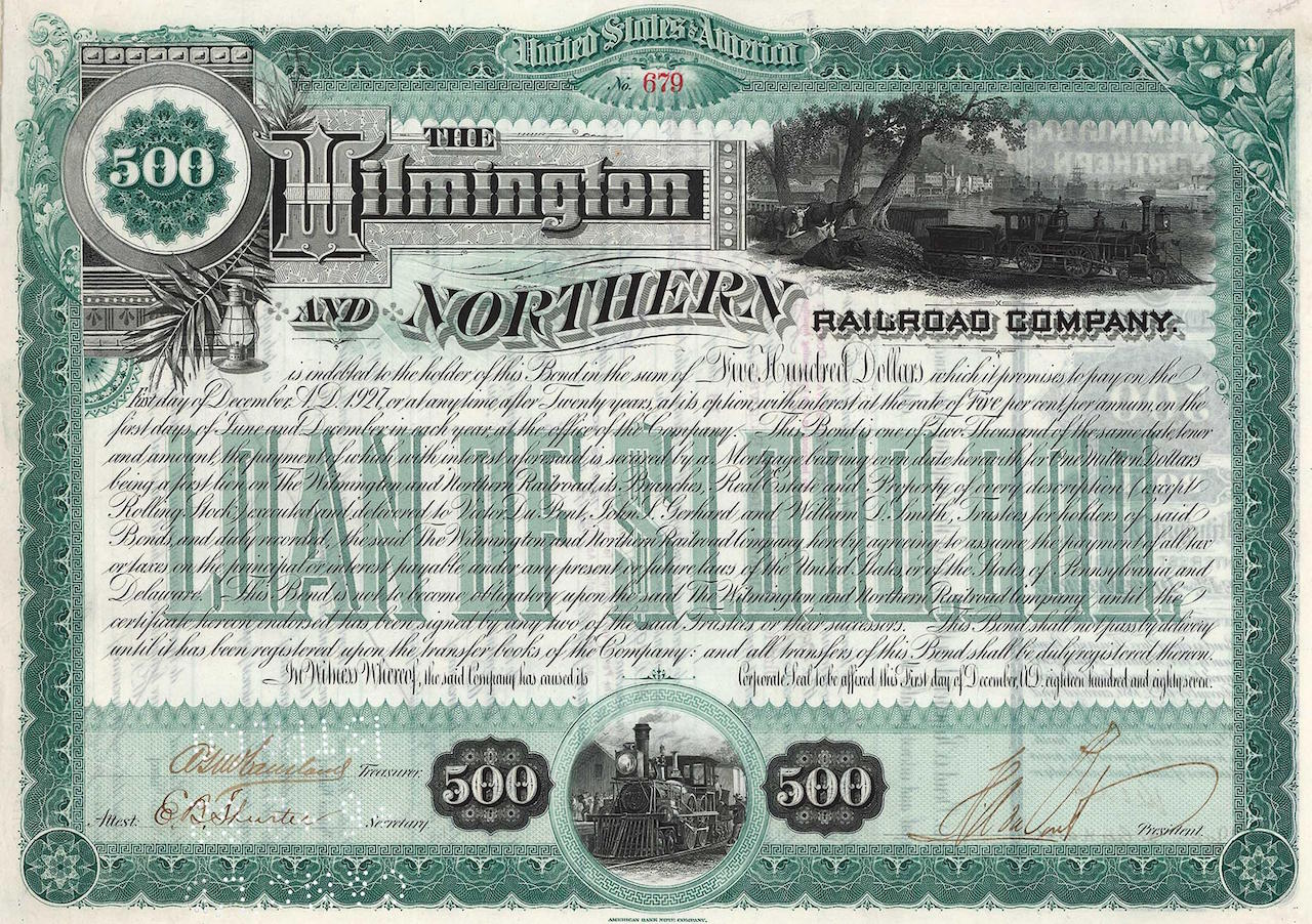 A-60200The Wilmington and Northern Railroad Company-1Delaware18871 obbligazione 5% da 500 $R3 (501-1000 pezzi)S3 (da 51 a 100 €)