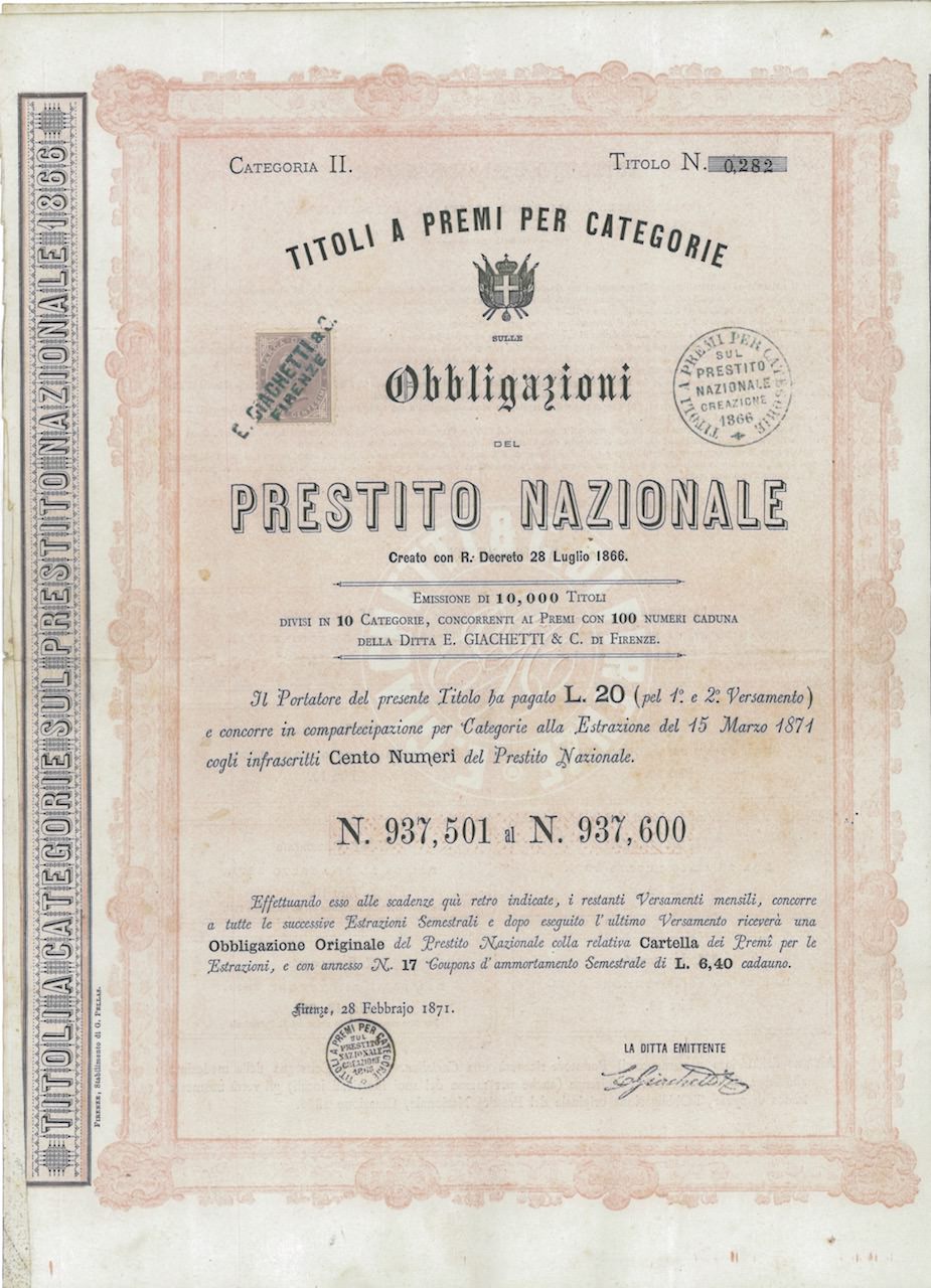 Titoli a Premi per Categ. sulle Obblig. del Prestito Nazionale