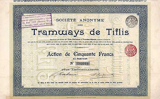 Fondata nel 1885 dopo che la Duma di Tbilisi aveva assegnato una concessione a Charles Drzewiecki. Il tram di Tbilisi è stato costruito con il know-how belga e finanziato dalla capitale belga.