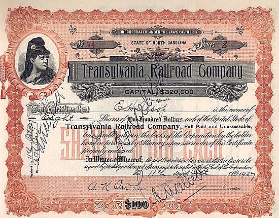 Concessa in licenza nel 1899 come successore della Hendersonville & Brevard RR. Hendersonville - Brevard-Taxaway, rotta N.C. (32 miglia).