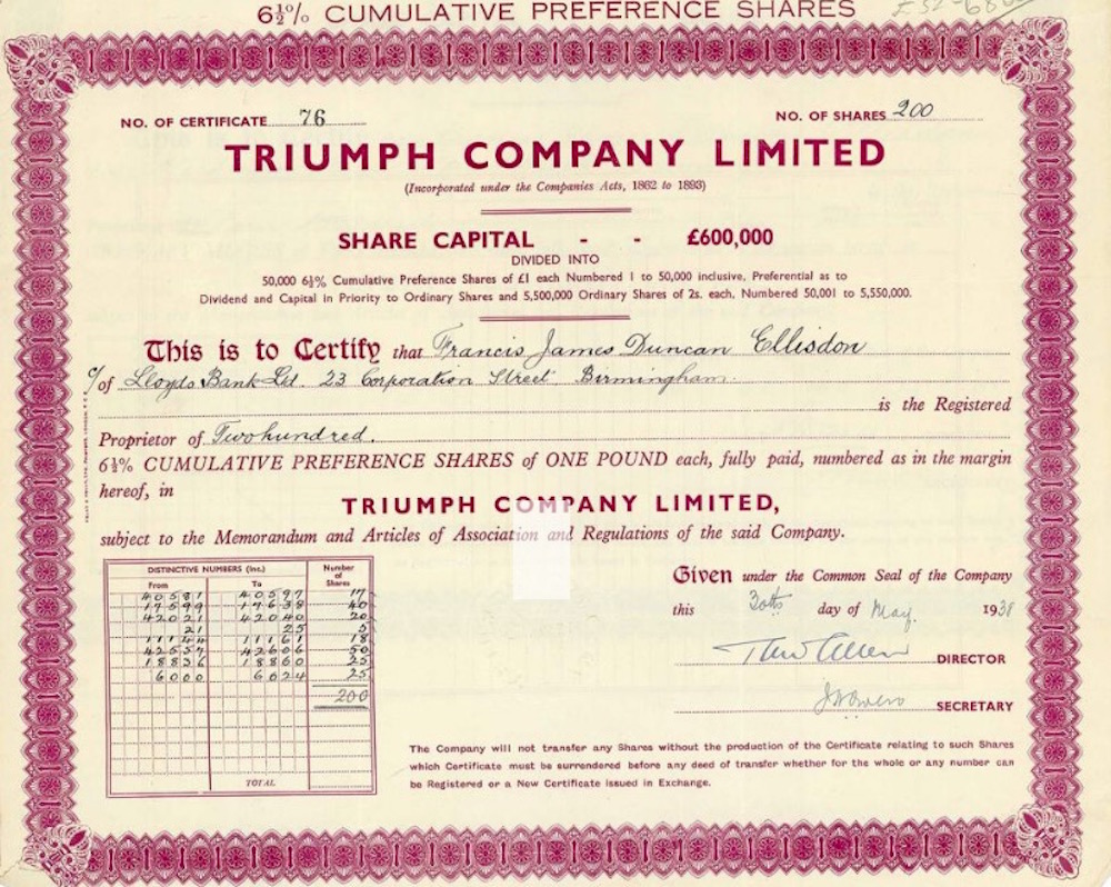 Fondata il 12 febbraio 1897 come New Triumph Cycle Company, cambiò in Triumph Cycle Company nel luglio 1897, commerciando come Triumph Company da dicembre 1930. La fabbrica di motociclette di fama mondiale è entrata nel settore automobilistico solo nel 1923. Triumph costruì un gran numero di auto sportive di successo fino al 1980.