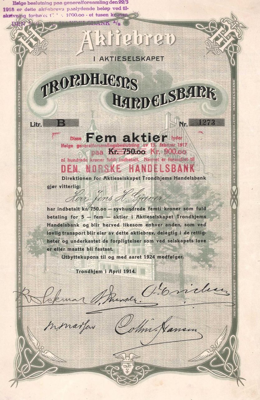 A-60437Trondhjems Handelsbank-1Trondhjem19141 azione nominativaR2 (1001-5000 pezzi)S2 (da 26 a 50 €)