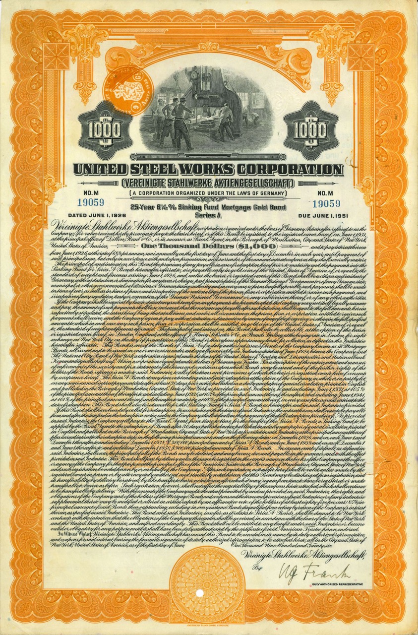 L’azienda aveva sede a Düsseldorf. Negli anni ’30 VSt era una delle più grandi aziende tedesche e, a volte, anche il più grande produttore di acciaio in Europa. Con un massimo di circa 250.000 lavoratori, ha prodotto circa il 40% dell’acciaio e il 20% del carbone prodotto in Germania. L’amministratore delegato (capo del Vorstand) era inizialmente Albert Vögler, fino al 1935. Gli successe (1935-1943) come amministratore delegato da Ernst Poensgen, discendente della famiglia industriale renana Poensgen e cofondatore della “Vereinigte Stahlwerke AG” nel 1926. Fritz Thyssen era presidente del consiglio di amministrazione (Aufsichtsrat).