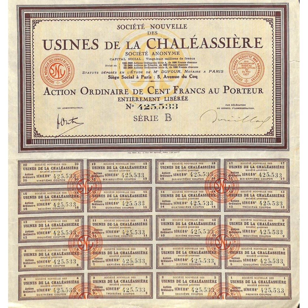 Usines de la chaleassiere soc. Nouvelle des
