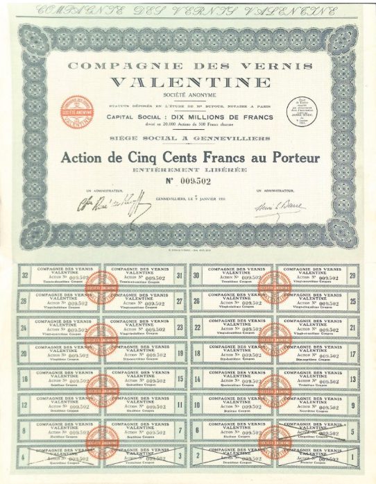 Il 31 dicembre 1925 viene creato in Francia l’azienda Vernis Valentine nata dalla fusione della Società Valentine e Cie Incorporated e Etablissements Lemoine.