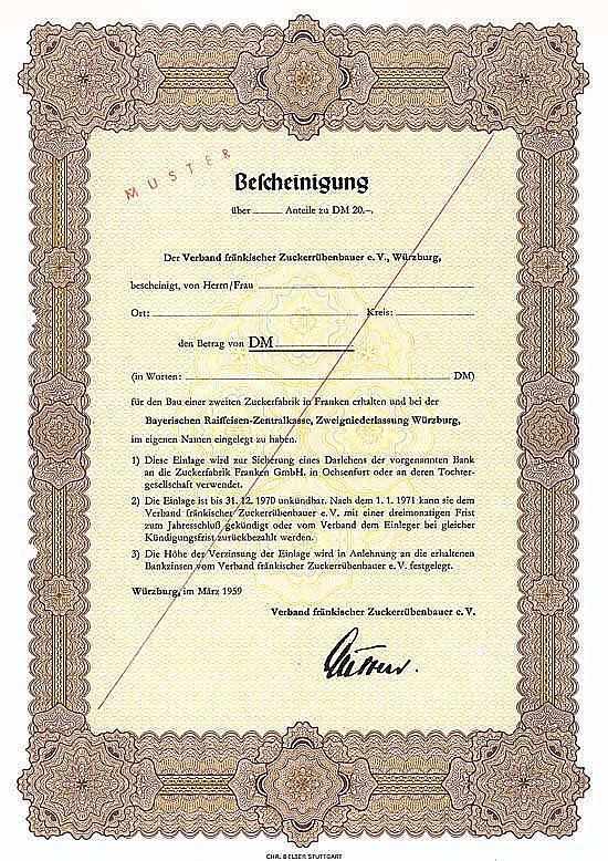 Il deposito presso Bayerische Raiffeisen-Zentralbank AG, Zwnl. Würzburg, è stato utilizzato per garantire un prestito alla Zuckerfabrik Franken GmbH, Ochsenfurt.