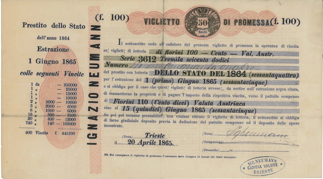 A-14987Viglietto di Promessa-1Trieste1865-R5 (101-250 pezzi)S4 (da 101 a 250 €)