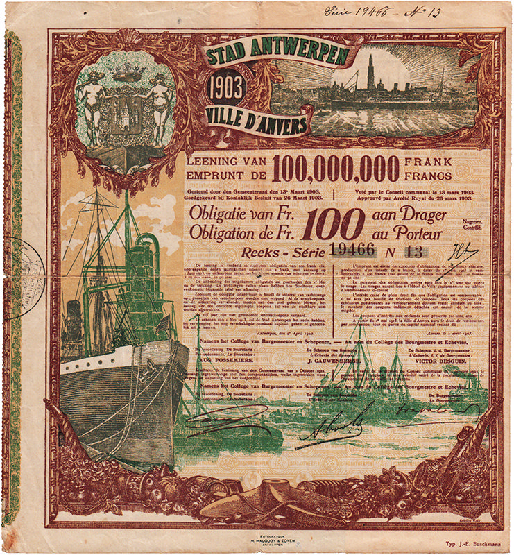 Ville d’Anvers – Emprunt de 100.000.000 Francs