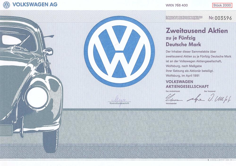 Fondata nel 1937 per la costruzione dell'auto KdF (power through joy), i partner erano due filiali del sindacato unificato Deutsche Arbeitsfront. Il leggendario VW Beetle è stato costruito dal altrettanto leggendario Ferdinand Porsche. Ma le persone che avevano messo da parte i soldi peu-á-peu con la carta di risparmio KdF non hanno ottenuto la loro auto: invece, la fabbrica ha prodotto un numero enorme di Kübelwagen per la Wehrmacht. Fu solo nel 1948 che la produzione di automobili civili iniziò a Wolfsburg sotto la direzione delle forze di occupazione britanniche. Oggi uno dei tre più grandi gruppi automobilistici al mondo. Nel 2009/10, vi fu un tentativo di acquisizione da parte di Porsche fatto con titoli di finezza. Ma il boss della Porsche Wendelin Wie... Altro