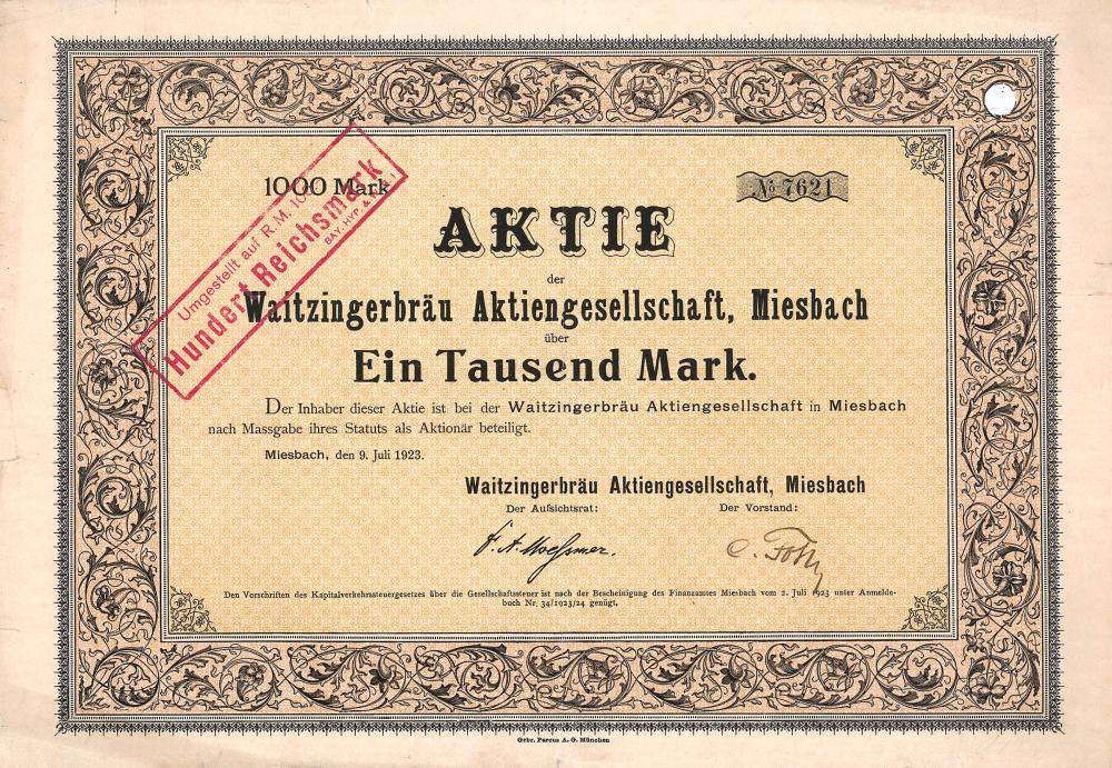 Fondata nel 1902 come Waitzingerbräu Miesbach AG, ribattezzata nel 1907 in Waitzingerbräu AG, nel 1964 ribattezzata "Kurfürstlich bayerisches Brauhaus Waitzingerbräu AG". L'AG ha rilevato i birrifici Carl Fohrische Miesbach e Wallenburg e il birrificio Waitzinger & Comp. a Miesbach. Nel 1907 acquisizione del birrificio Zederbräu e Schafbräu a Landsberg (Lech). Nel 1908 acquisizione del birrificio Moosrain (combinato con il birrificio di Miesbach) e il birrificio "Zum Kristeiner" a Landsberg. Nel 1917 acquisto del Pfletschbräu a Landsberg. L'AG aveva anche 15 locande a Miesbach, Schliersee, Diessen am Ammersee, Landsberg, Au bei Bad Aibling, Agatharied, Gmund am Tegernsee, Kloster Lechfeld e Parsberg. Nel 1923 conclusione di un gruppo di interesse con il ... Altro