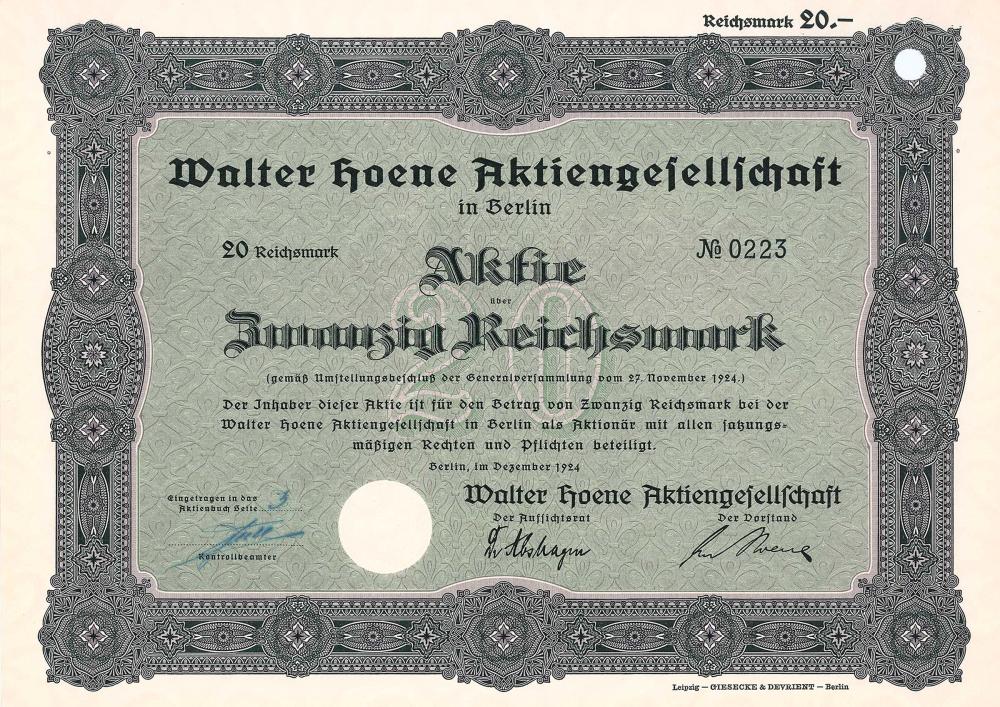 Fondata nel 1921 per continuare la precedente ditta individuale Walter Hoene. Specializzato nella costruzione di campi completi e ferrovie industriali, in particolare per le miniere di lignite e le centrali elettriche nelle aree della Germania centrale e della Lusazia. Le locomotive necessarie provenivano da Borsig e Henschel. Lo stabilimento principale era a Charlottenburg (Joachimsthaler Str. 1), esistevano filiali a Danzica e L'Aia (da dove venivano fornite le società speciali di estrazione della torba del "Irish Turf Board"). Nel 1926 fondazione della Saugling GmbH per la distribuzione dell'aspirapolvere "Saugling" prodotto da Borsig in tutto il mondo. Il fondatore e amministratore unico dell'azienda, Walter Hoene, è stato uno dei fondatori della Kaiser ... Altro