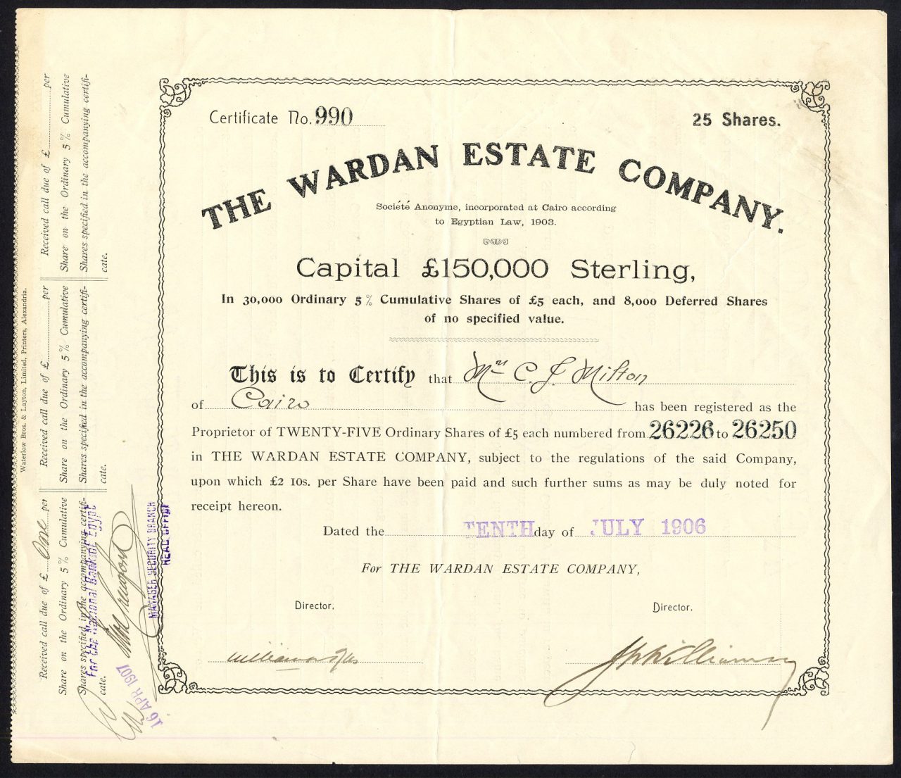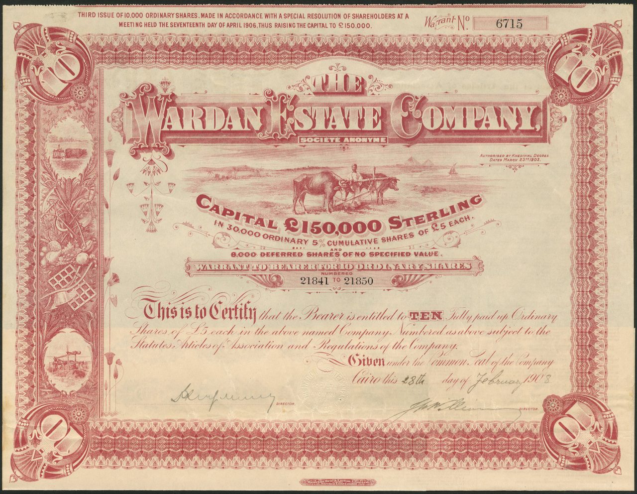 Autorizzato dal decreto Khedival del 23 marzo 1903.