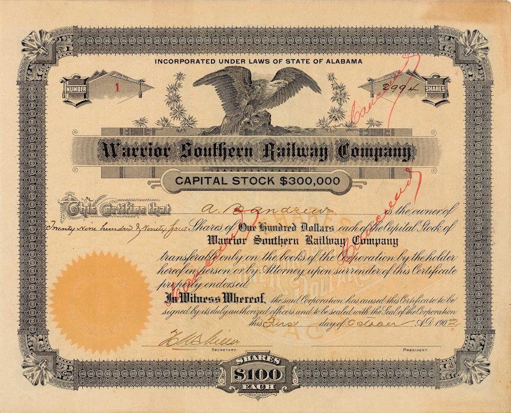 A-60108Warrior Southern Railway Company-1Alabama1902VariabileR4 (251-500 pezzi)S4 (da 101 a 250 €)