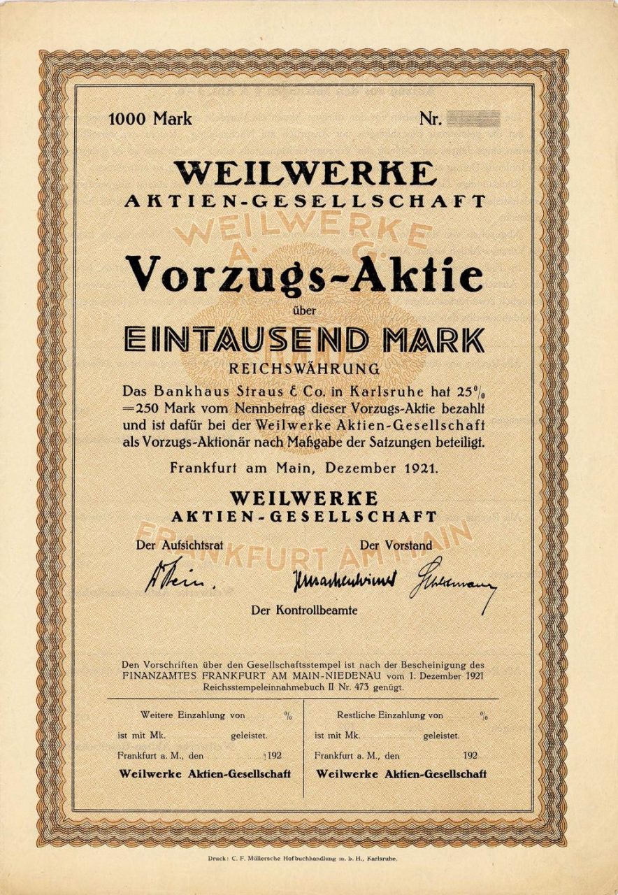 Nel 1896 vi fu la fondazione della Peter Weil & Co. dai fratelli Peter e Heinrich Weil. Nel 1921 come "AG per macchine da scrivere e fabbricazione di biciclette", dal dicembre 1921 al gennaio 1927 "Weilwerke AG", poi operante come "Torpedo Fahrräder und Typewriter Weilwerke AG". Fabbricazione di biciclette e motociclette a siluro, macchine da ufficio a siluro: macchine da scrivere, macchine di prenotazione e macchine per l'aggiunta rapida. Quotazione in borsa: Freiverkehr Frankfurt. Nel 1932 Remington divenne uno dei principali azionisti. Nel 1944 lo stabilimento di Francoforte fu duramente colpito dalle bombe. Dopo la ricostruzione, venne ribattezzata Torpedo-Büromaschinen AG nel 1959. Nel 1962 unione fiscale e accordo di trasferimento di profitti e per... Altro