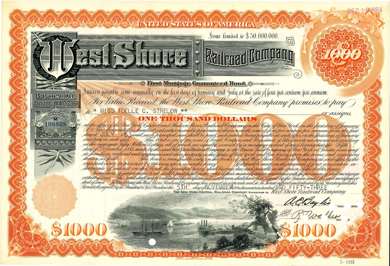 Oggi, la storia della West Shore Railroad è ricordata non solo come un episodio di competizione industriale, ma anche come un simbolo della volatilità del settore ferroviario del XIX secolo, dove le rivalità potevano costruire o distruggere fortune. I certificati e le obbligazioni emesse dalla compagnia, come quello qui descritto, rimangono testimoni tangibili di una battaglia epica tra compagnie e di un periodo in cui le ferrovie erano la spina dorsale economica dell’America. Ogni certificato rappresenta un frammento della storia ferroviaria e industriale americana, un’epoca in cui l’espansione delle infrastrutture di trasporto ridefiniva il paesaggio economico e sociale del paese.