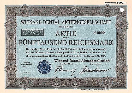 A-68551Wienand Dental AG-1Berlino19271 azione da 5.000 Marchi--